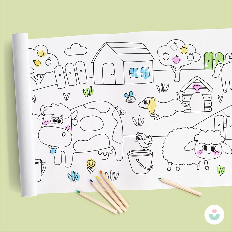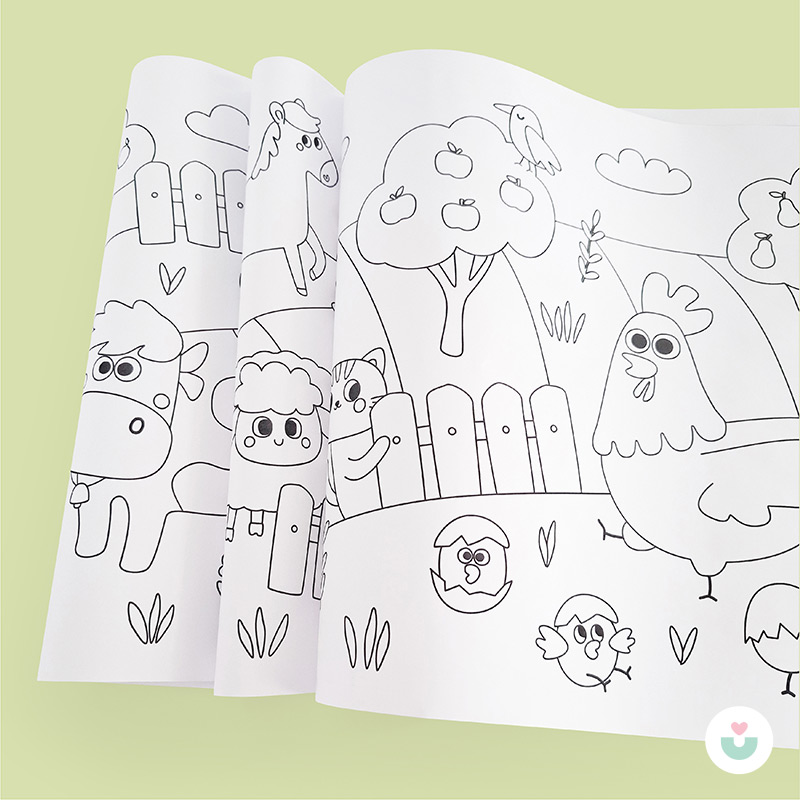 Çocukların hem öğrenip hem eğleneceği bu dolu dolu boyama rulosu, kalabalık etkinlikler ya da evde sakin boyama saatleri için birebir.