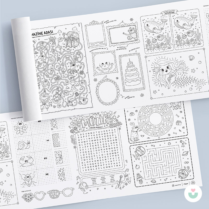 Her haritanın yanında, eğlenceli oyunlarla dolu dev aktivite kağıdı da hediye! Bu eğlenceli aktivite kağıdıyla çocuklar: