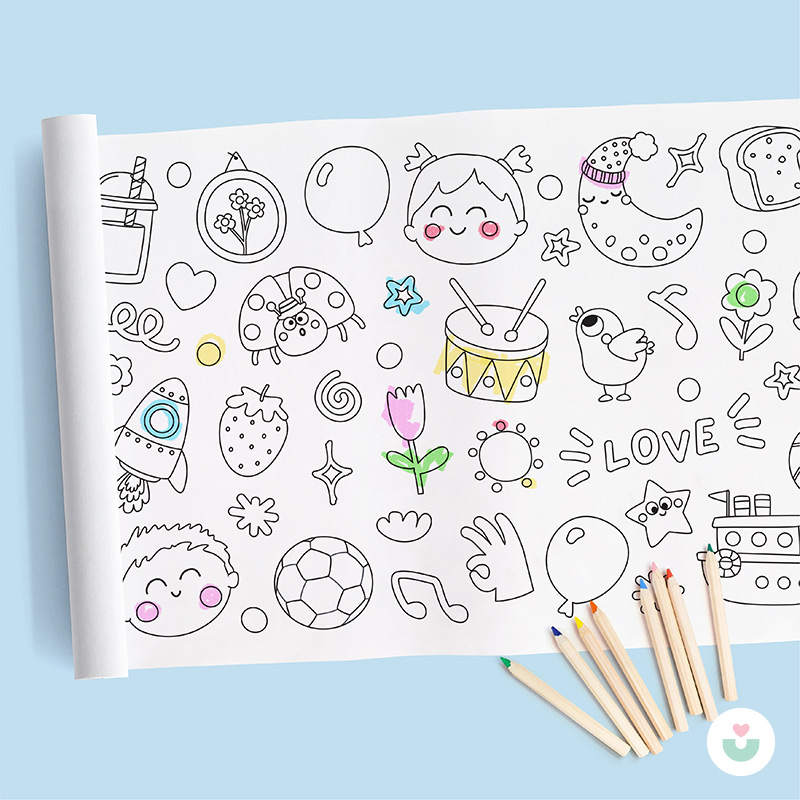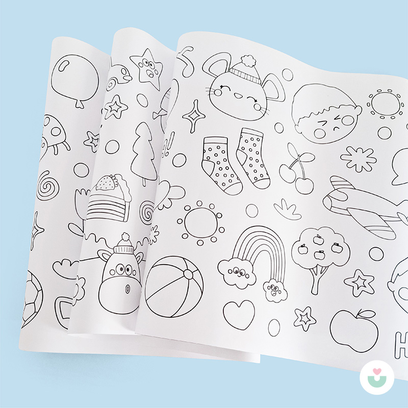 Gelince Haber Ver🎈Jüppo’nun Mutluluk Dünyası Dev Boyama Kağıdı, çocukları 100’den fazla sevimli figürle dolu rengârenk bir yolculuğa çıkarıyor! Bu tasarımda milkshake, balon, top, bukalemun, arı, çam ağacı, gökkuşağı, yıldızlar, eldivenler ve daha nicesi yer alıyor. Neşeli çizimleriyle çocukların iç dünyasına hitap eden bu özel rulo kağıt, her yaş grubundan çocuk için harika bir boyama deneyimi sunuyor.