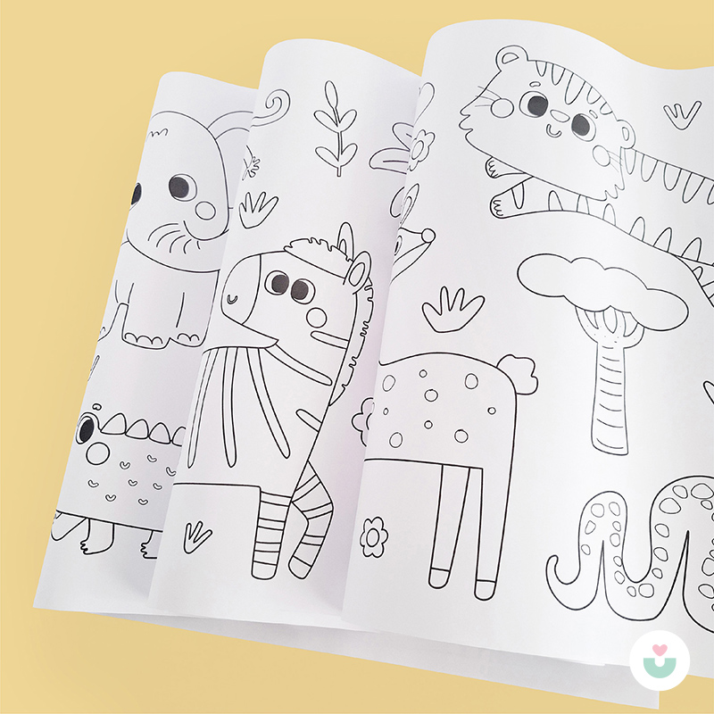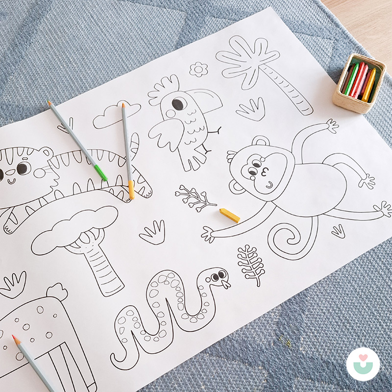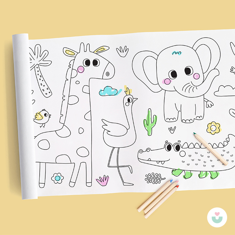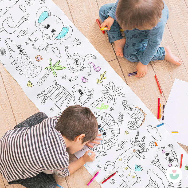 Gelince Haber Ver🐘🦓Safari Macerası Dev Boyama Kağıdı, çocukları vahşi doğanın kalbine davet ediyor! Zürafa, fil, zebra, aslan, kaplan, maymun, timsah, bukalemun, yılan ve daha pek çok safari hayvanı bu dev rulo üzerinde keşfedilmeyi bekliyor.