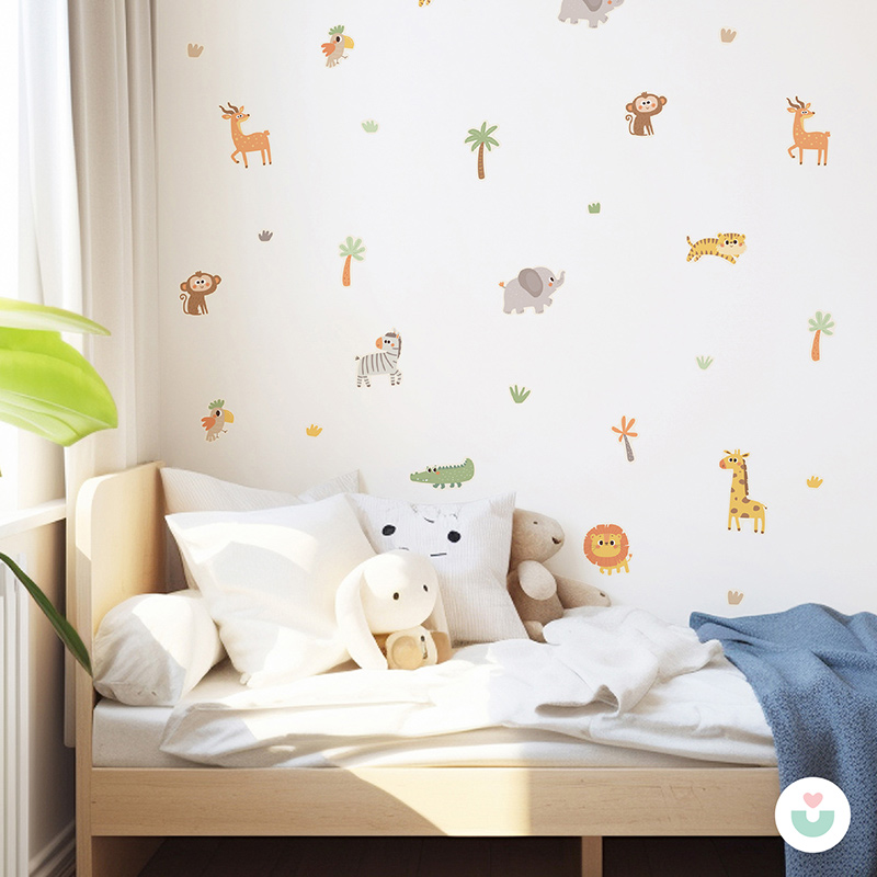 Gelince Haber Ver🦁Minik figürlerle büyük hayal dünyaları yaratın! Safari Mini Duvar Sticker Seti, renkli hayvan karakterleriyle çocuk odalarına neşe getiriyor. Antiloptan aslana, timsahtan zürafaya uzanan zengin figür çeşitliliğiyle çocuk odalarına hayat dolu bir safari havası katıyor. Her biri ayrı ayrı kesilmiş olan figürleri duvarınıza istediğiniz aralıklarla yerleştirebilirsiniz. Uygulaması basit, etkisi büyük bir duvar sticker seti!