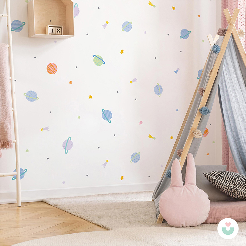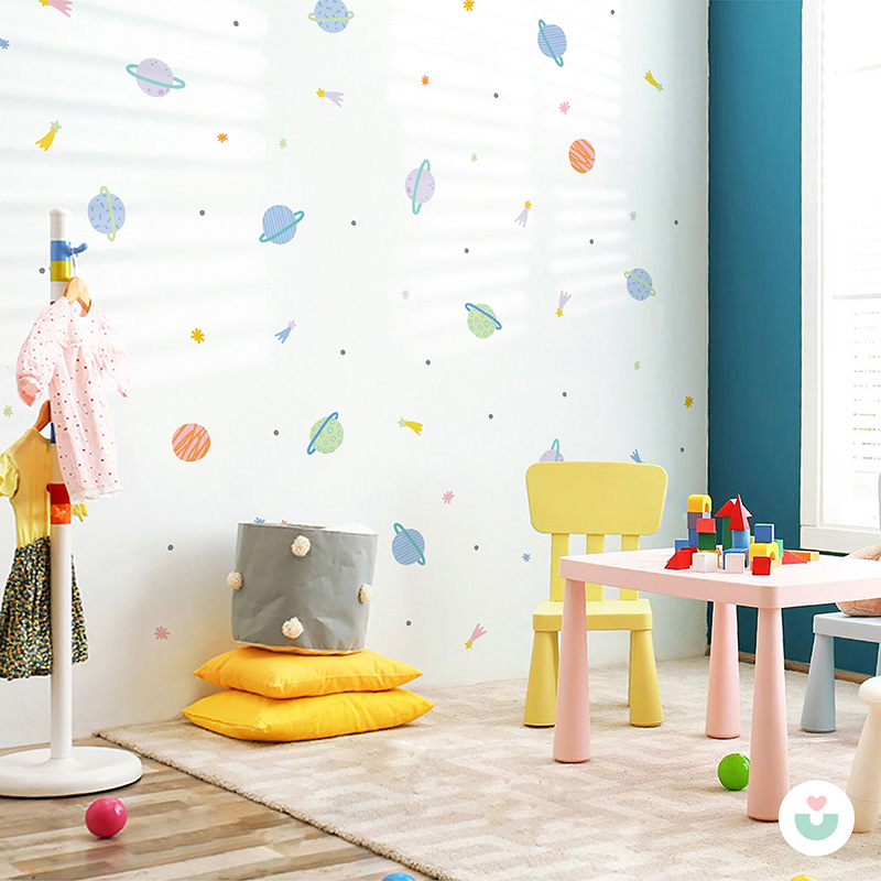 Gelince Haber Ver🚀 Jüppo’nun özgün tasarımı olan Uzay Mini Duvar Sticker Seti; sevimli gezegenler, parlak yıldızlar ve pastel renkli uzay detaylarıyla hem çocukların hem de ebeveynlerin favorisi olmaya aday. Bu mini set, duvar dekorasyonunda maksimum etki yaratmak isteyenler için özel olarak tasarlandı. Tüm figürler tek tek kesilmiş olarak gönderilir, bu sayede uygulaması son derece pratiktir. Çocuğunuzla birlikte keyifli bir aktivite yaparak uzay temalı bir atmosfer yaratabilirsiniz.